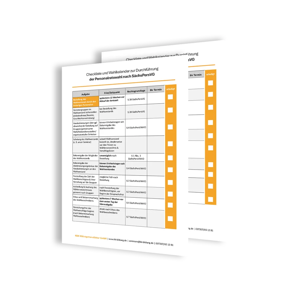 Alle Inhalte sind exakt auf das SächsPersVG abgestimmt und machen Sie fit für eine rechtssichere Wahl.
